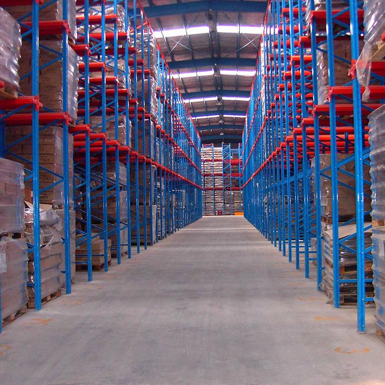 (4)因为可以存取任意货位的货物特点,所以一个通道对应左右两边的货物,相对窄巷道、贯通、压入式、重力式重型货架产品来说利用率不是很大。