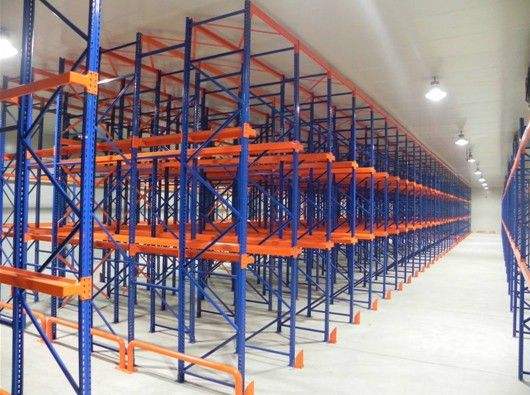 贯通式货架,是一种不以通道分割的、连续性的整栋货架,在支撑导轨(牛腿梁)上,托盘按深度方向存放,一个紧接一个,这使得高密度存放成为可能。驶入式货架适用于品种少、数量大的货物存放,常用于存放大批同类型货物,对空间利用较高,适合于食品行业、化工行业、制衣行业、冷库等存储空间成本较高的场合,其单位场地的储存成本相对较低。
