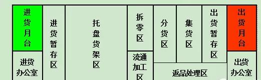 I型动线描述:出货和收货区域在仓库的不同方向。