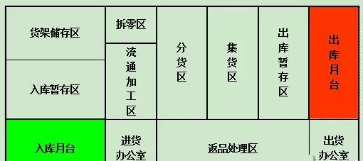 U型动线描述:在仓库的一侧有相邻的两个发货和收货月台。
