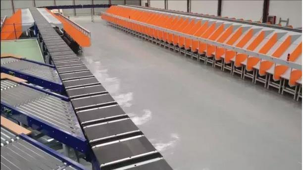 交叉带分拣机的优点就是噪音低、可分拣货物的范围广,通过双边供包及格口优化可以实现单台最大能力约2万件每小时。