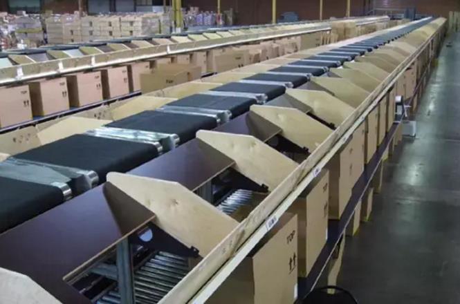翻盘式分拣机是通过托盘倾翻的方式将包裹分拣出去的,该分拣机在快递行业也有应用,但更加多的是应用在机场行李分拣领域。