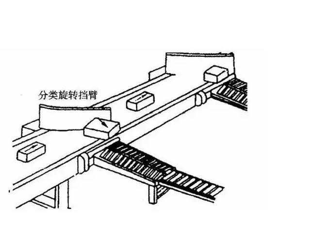 挡板动作时,像一堵墙似地挡住商品向前移动,利用输送机对商品的摩擦力推动,使商品沿着挡板表面移动,从主输送机上排出至滑道。平时挡板处于主输送机一侧,可让商品继续前移;如挡板作横向移动或旋转,则商品就排向滑道。
