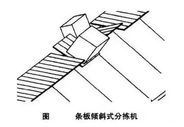 这是一种特殊型的条板输送机,商品装载在输送机的条板上,当商品行走到需要分拣的位置时,条板的一端自动升起,使条板倾斜,从而将商品移离主输送机。商品占用的条板数足随不同商品的长度而定,经占用的条板数如同一个单元,同时倾斜,因此,这种分拣机对商品的长度在一定范围内不受限制。