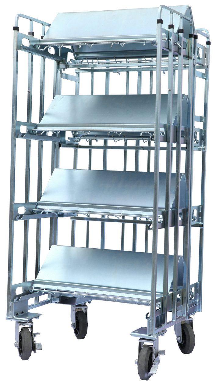 物流台车又叫载货台车或笼车,是一种安装有四只脚轮的运送与储存物料的单元移动集装设备。常用于大型超市的物流配送或工厂工序间的物流周转。