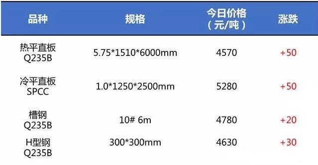 昨日午后,唐山钢坯报价再涨30至3970元/吨,不断刷新高位,现货价格紧跟上涨,多个品种规格再现百元涨幅;昨夜盘至今,黑色系期货窄幅偏强运行,除焦煤跌超1%外,其他品种飘红;昨日钢铁世界地磅指数录得98点,出货状况维持火热,下面来看今早最新价格情况。
