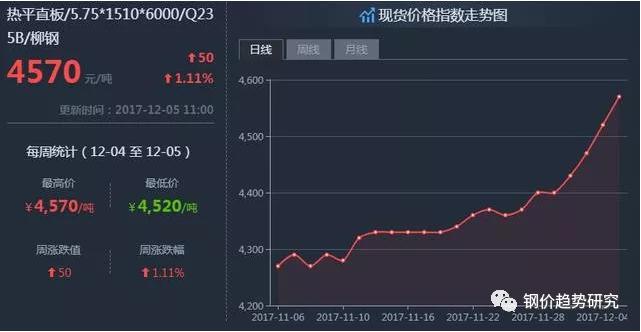 2、近期螺纹钢现货狂涨,带着期货也不得不涨。螺纹钢1801近月合约与沪杭螺纹钢价格贴水已达500元以上,如果螺纹钢现货价格按实际重量计价,价差将达到700元,1805远月合约与现货的价格差接近千元的。以前是期货炒作带火了现货,最近是现货带火了期货。