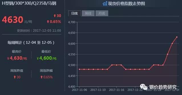 H型钢现货价格指数走势图