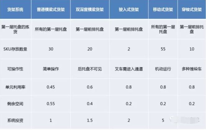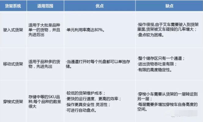 表1 主要货架系统对比情况
