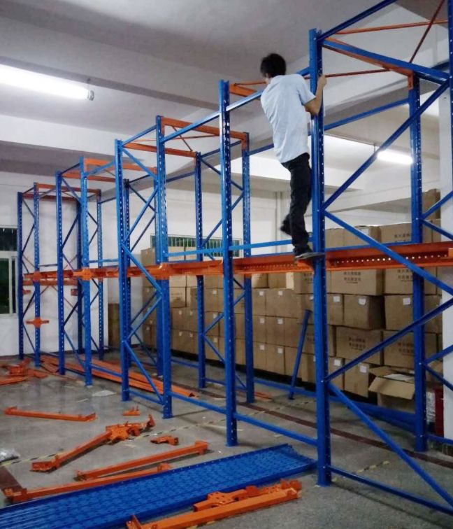 (8)规定的单元荷载托盘应按照规定的正确的方向放置在仓储货架支撑构件上。托盘支撑与梁轨道的正确方向。