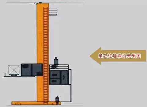 单立柱结构的堆垛机机架由一根立柱和下横梁组成。立柱多采用较大的H型钢或焊接制作,立柱上附加导轨。整机重量较轻,消耗材料少,因此制造成本相对较低,但刚性稍差。由于载货台及货物对立柱的偏心作用,以及行走、制动时产生的水平惯性力作用,使单立柱堆垛机在使用上有局限性。不适于起重重量大和水平运行速度高的堆垛机。