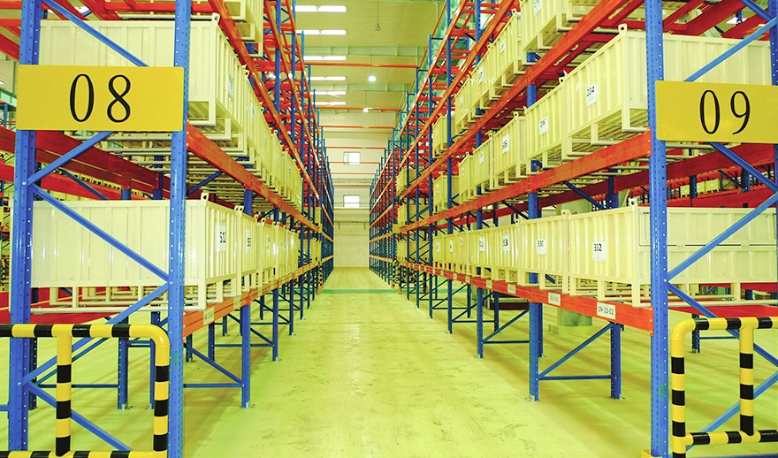 8、横梁货架还可以配层板,可以是钢板、,密氨板或格栅网。以便使用不同尺寸的托盘。